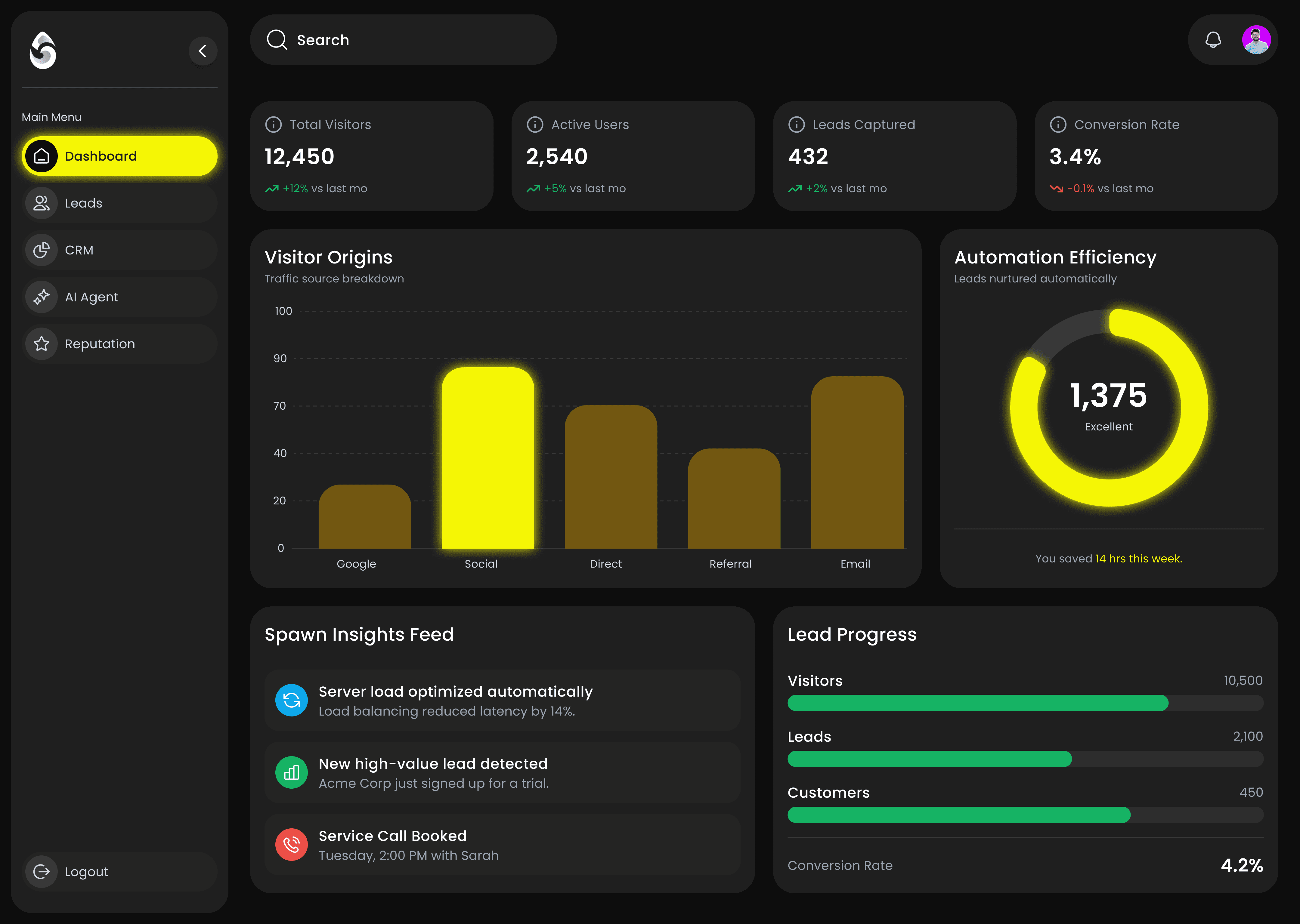 Trusted by over 68 businesses who’ve scaled faster and smarter with Spawn’s all-in-one automation systems.
